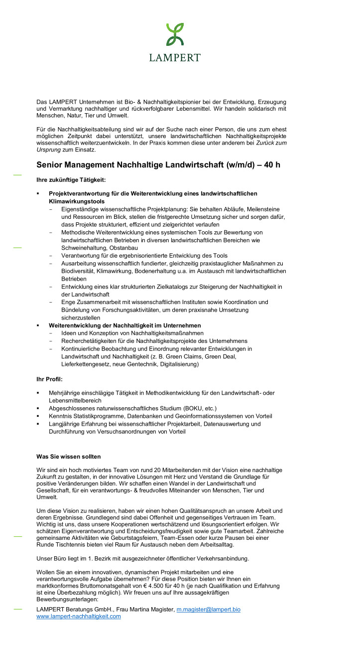 Senior Management Nachhaltige Landwirtschaft (w/m/d)