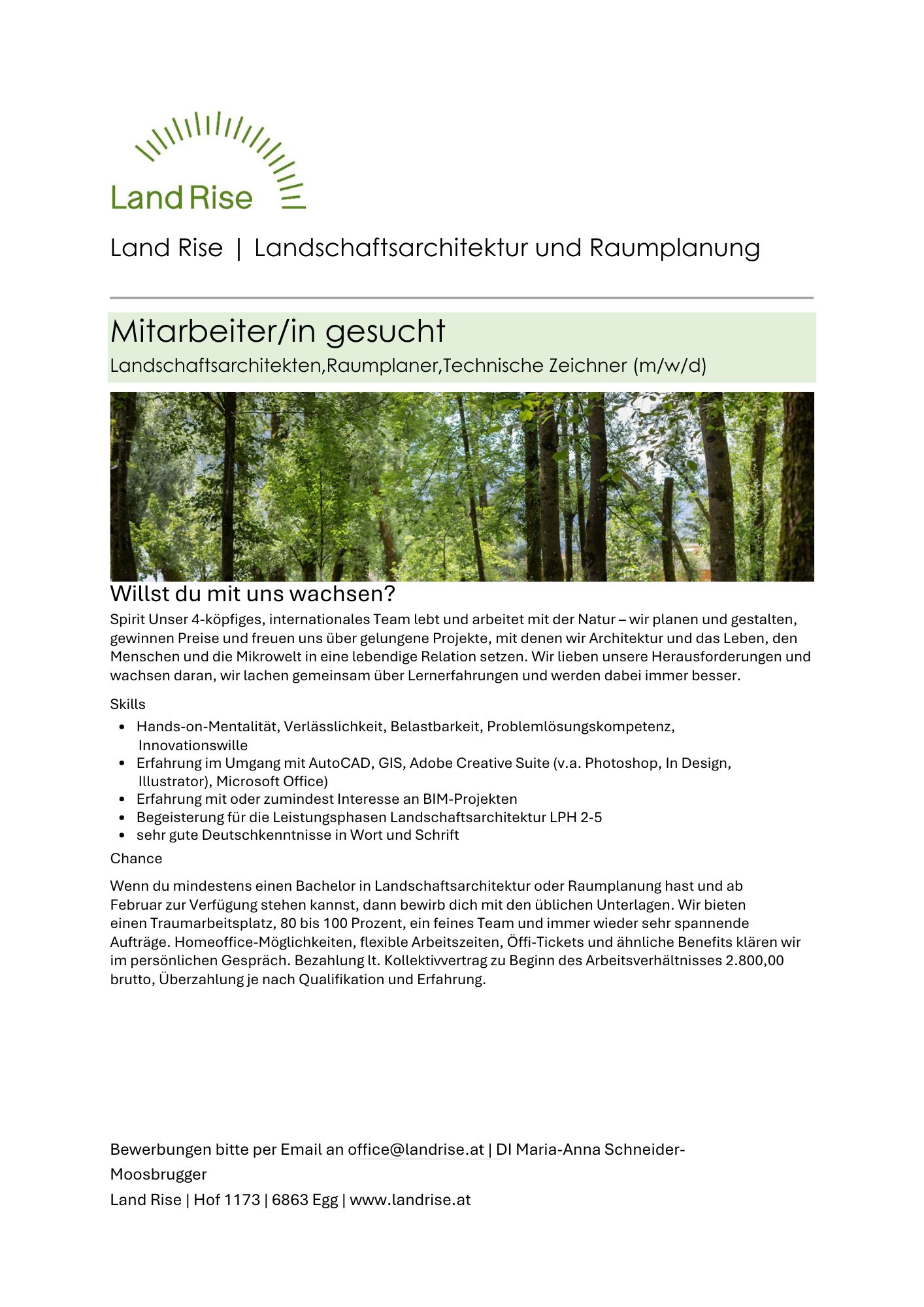 Landschaftsarchitekt*innen, Raumplaner*innen, Technische Zeichner*innen (m/w/d)