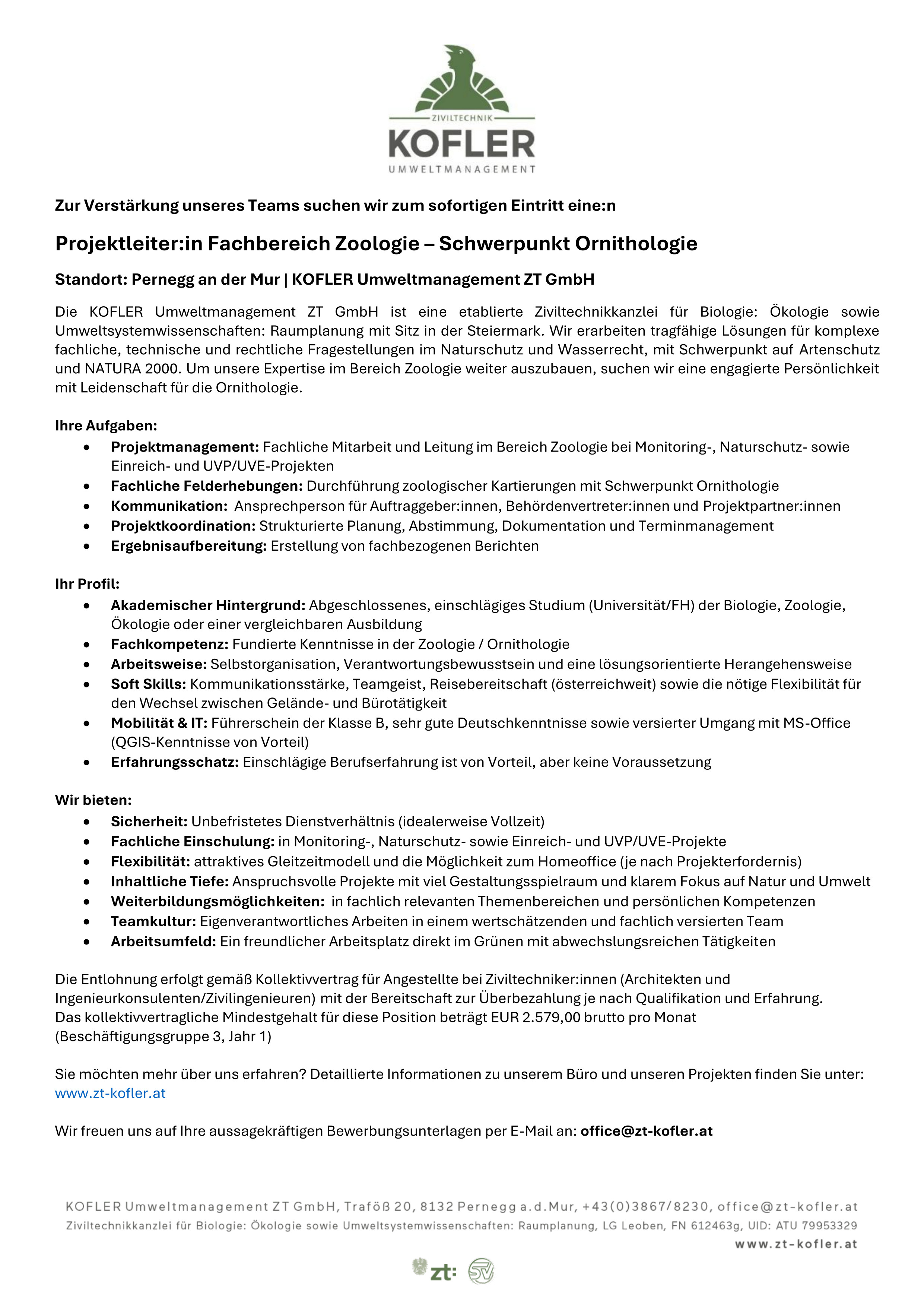 Projektleiter*in Fachbereich Zoologie – Schwerpunkt Ornithologie