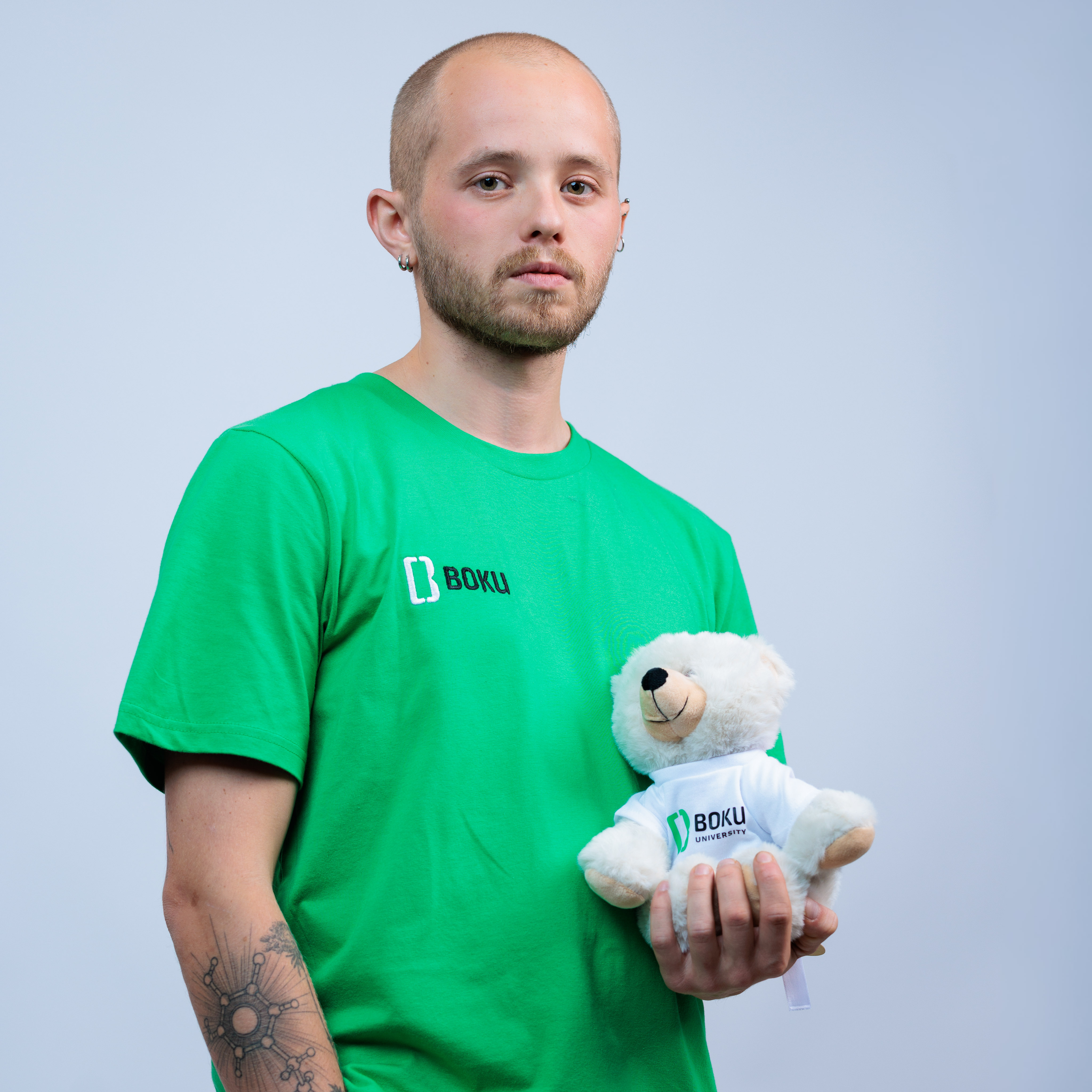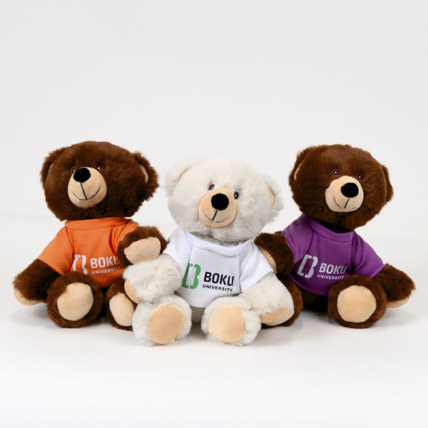 Mit dem BOKU-Logo und in verschiedenen Farben erhältlich – perfekt, um dem RecycelBär einen neuen Look zu geben.