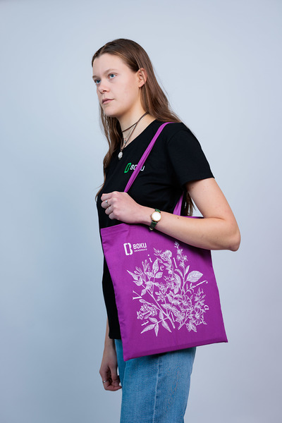 Das BOKU Baumwollsackerl mit Blumenmotiv ist ein praktischer Begleiter für Einkauf, Studium und Alltag.