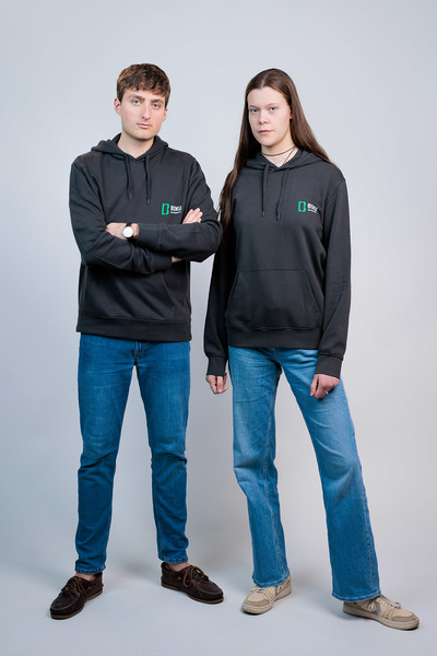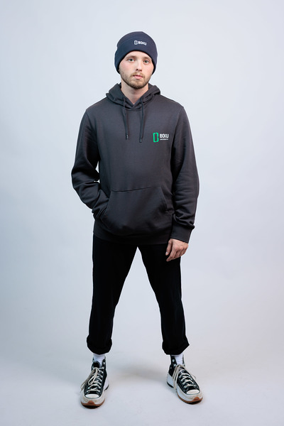 Material: 280g/m², 85% gekämmte zertifizierte Bio-Baumwolle, 15% recyceltes Polyester, enzymgewaschen, Kapuzenfutter: 100% gekämmte zertifizierte Bio-Baumwolle, Single Jersey