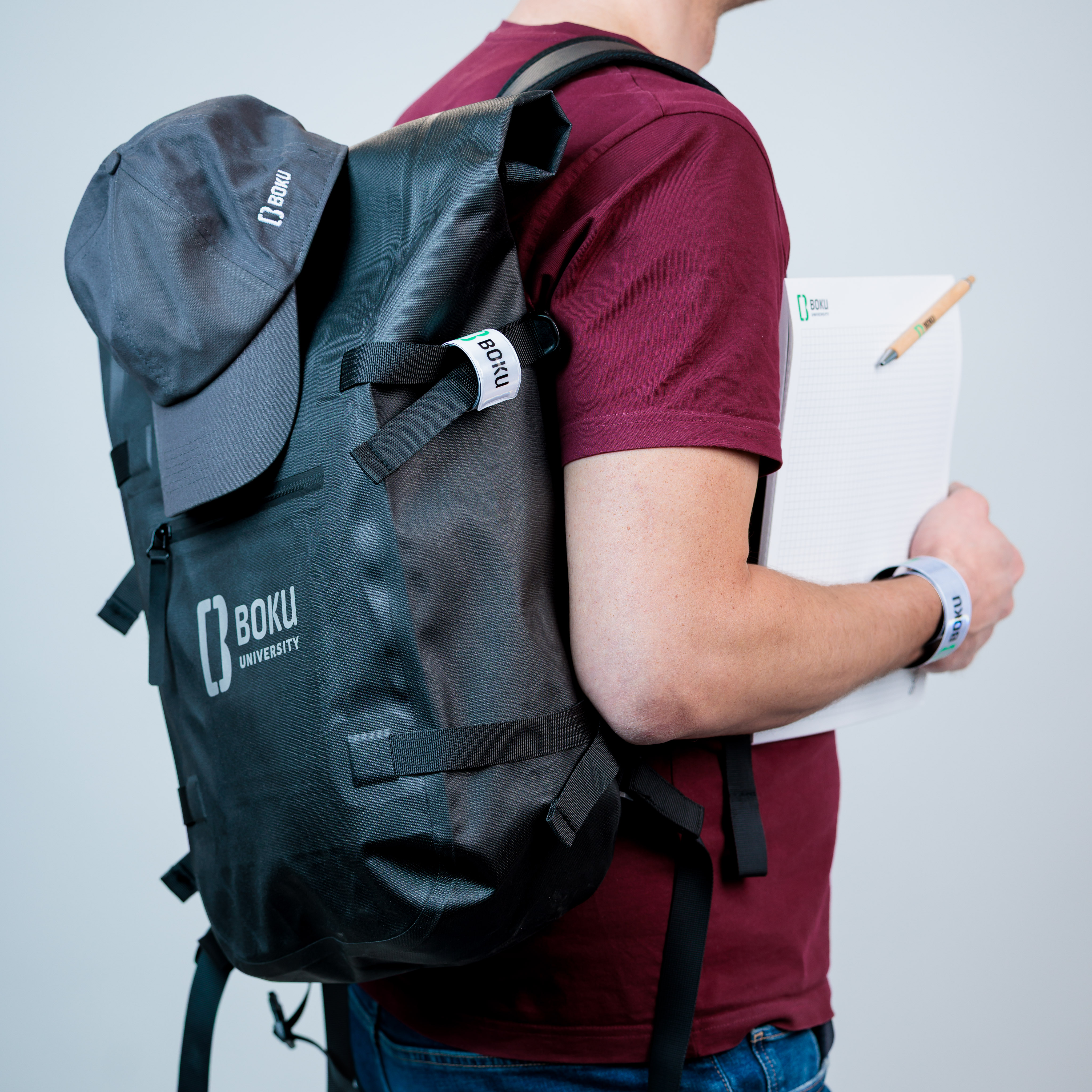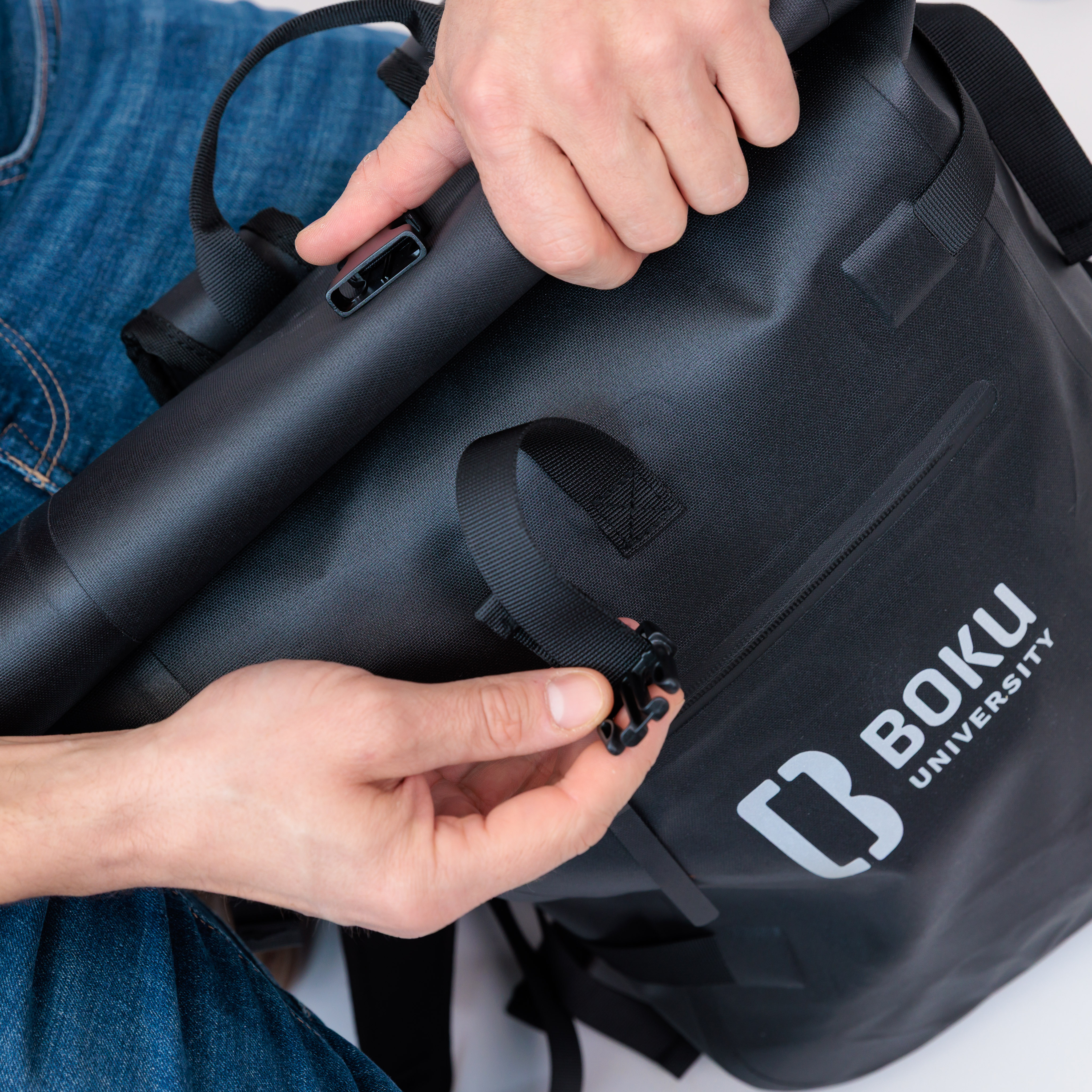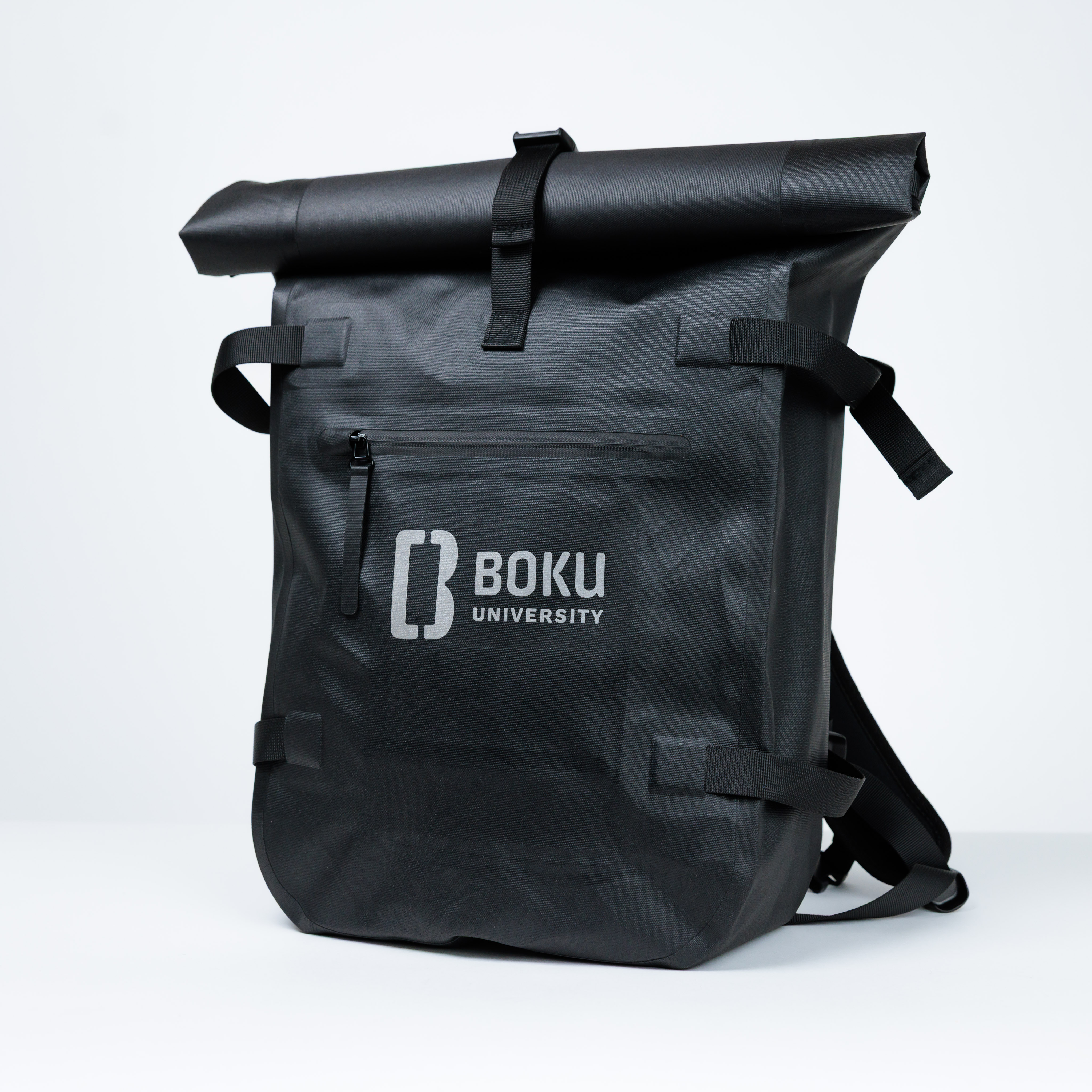 Der BOKU Rolltop Rucksack ist der ideale Begleiter für Campus, Alltag und unterwegs.